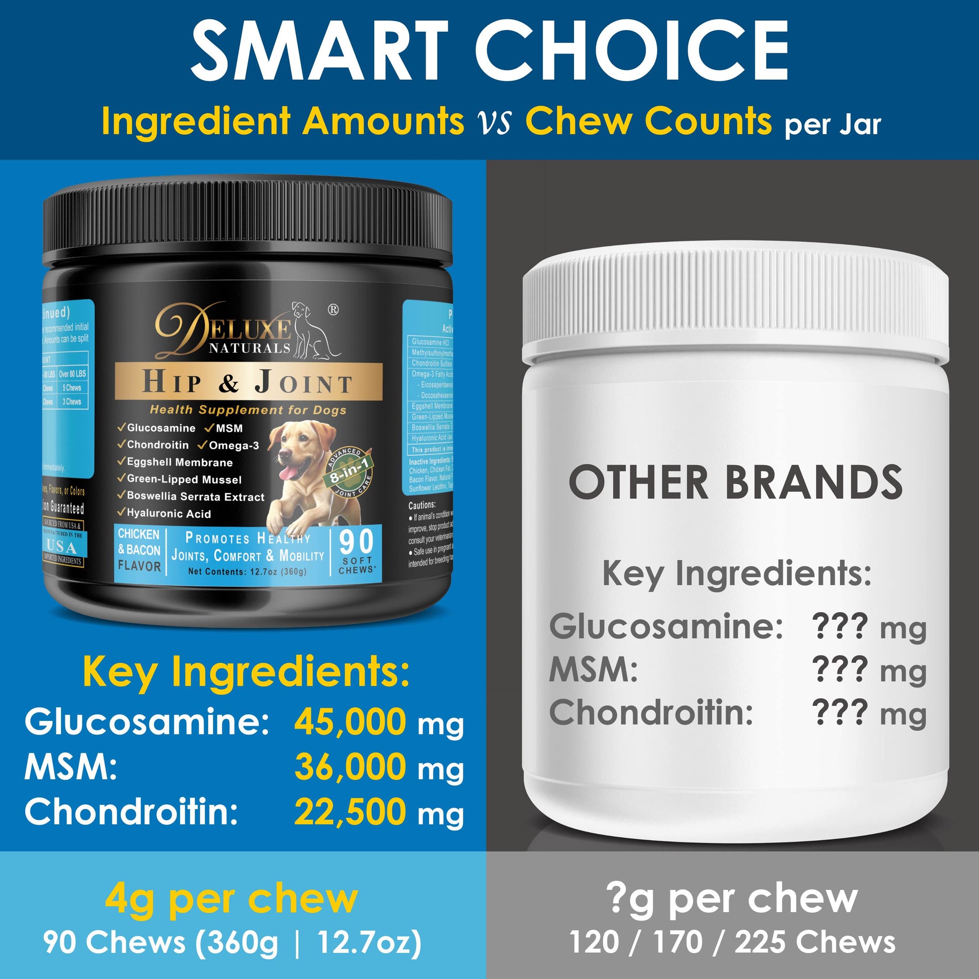 Deluxe Naturals Hip and Joint Soft Chews for Dogs - 180 Count (Pack of 2 x 90ct)
